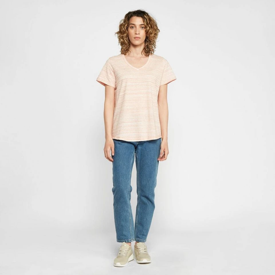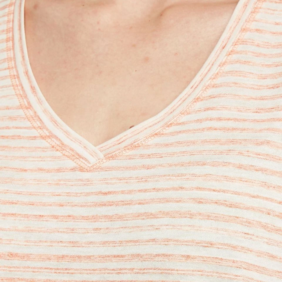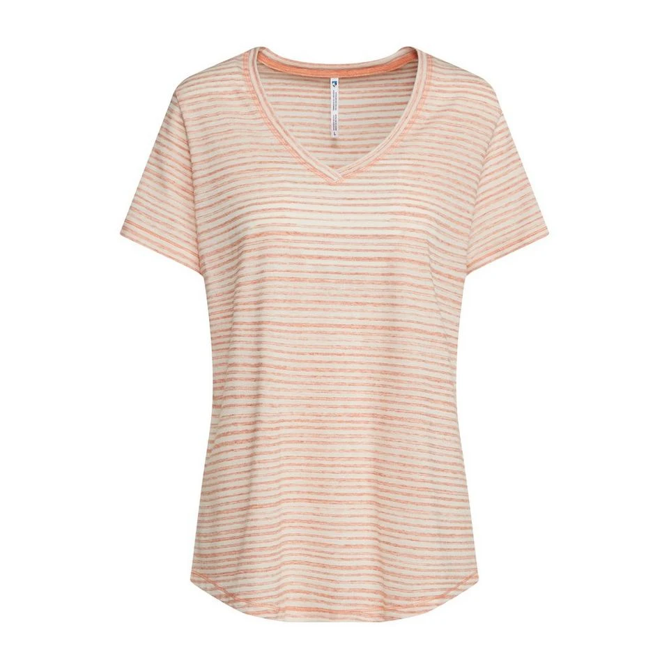 A stylish and stretchy V-neck t-shirt made with a blend of fabrics that are designed to deliver comfort and breathability during casual spring and summer adventures.
